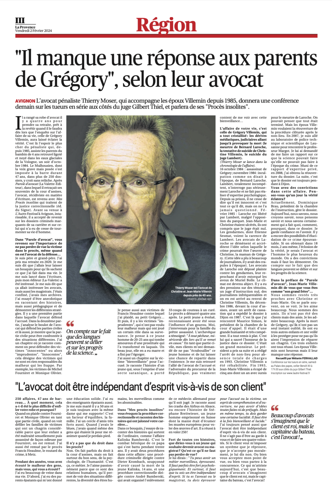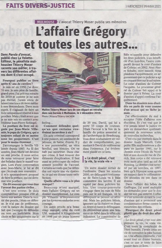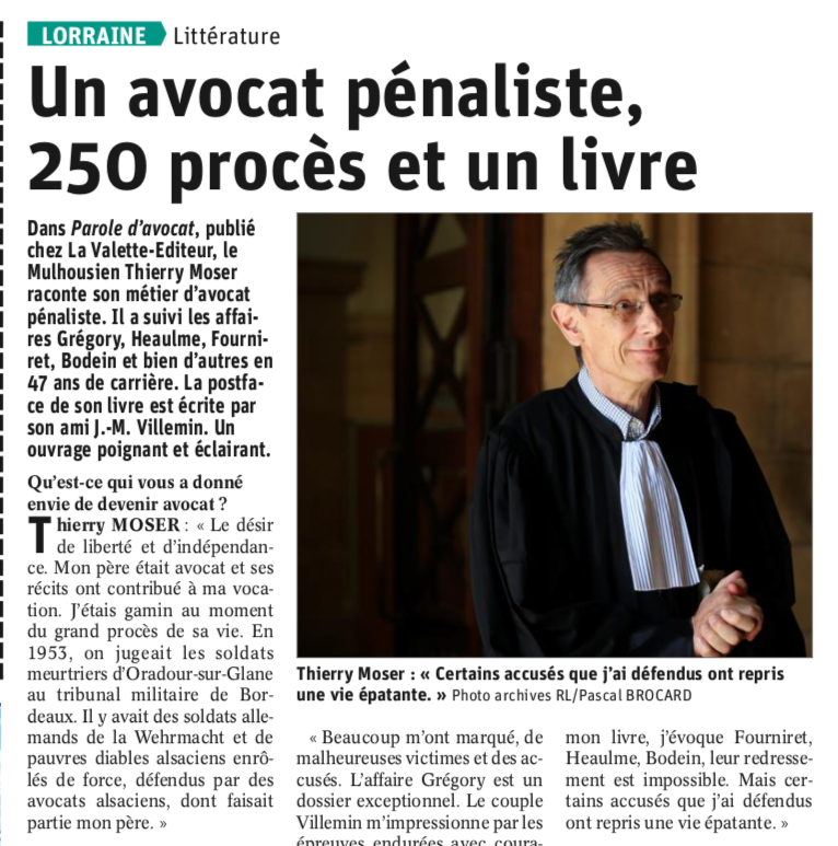 Affaire Grégory. Me Thierry Moser, l’avocat et ami des époux Villemin