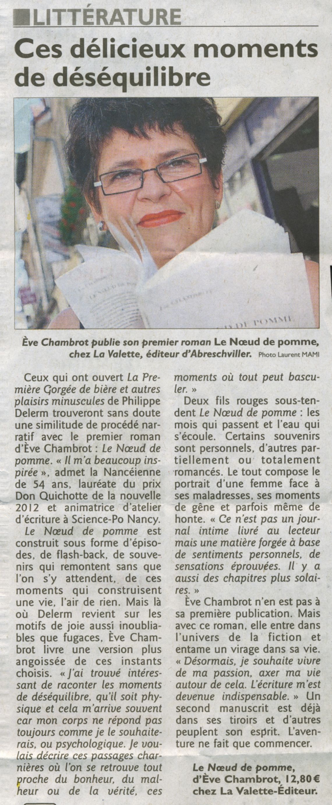 Eve CHAMBROT dédicacera Le Nœud de pomme (en sélection)