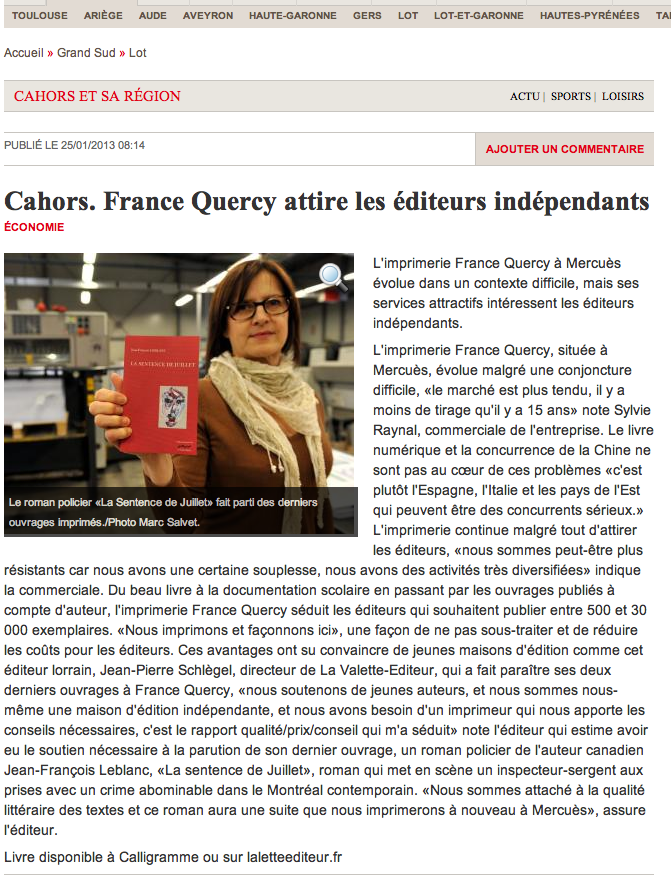 LA DEPECHE du 25 janvier 2013