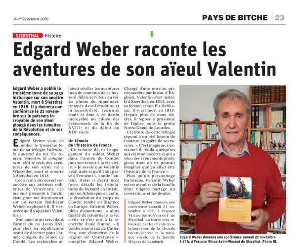 Edgard WEBER présente l’épilogue de sa trilogie.