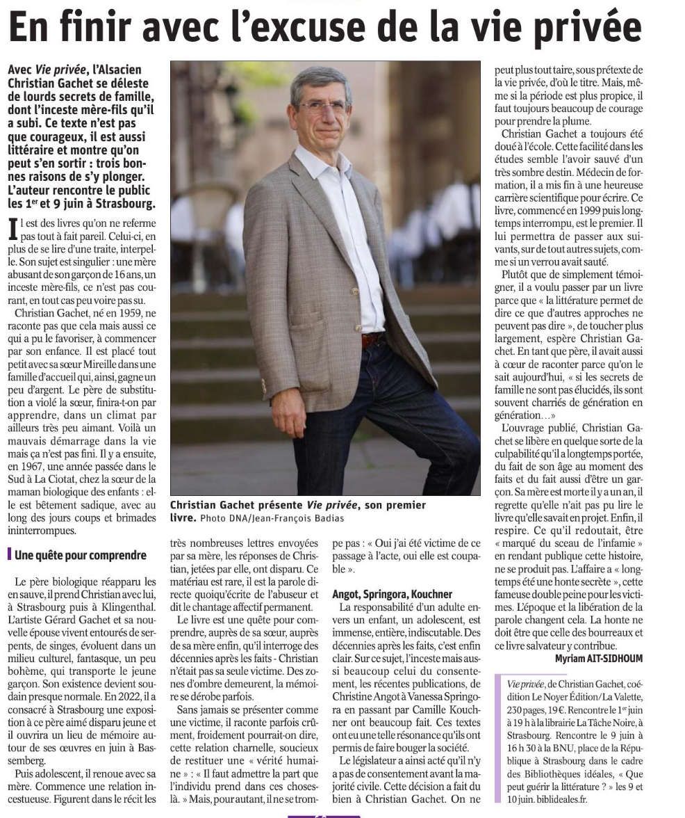 Victime d’une mère incestueuse : la " Vie privée » de Christian Gachet " (article Le Parisien 18 mai 2023)